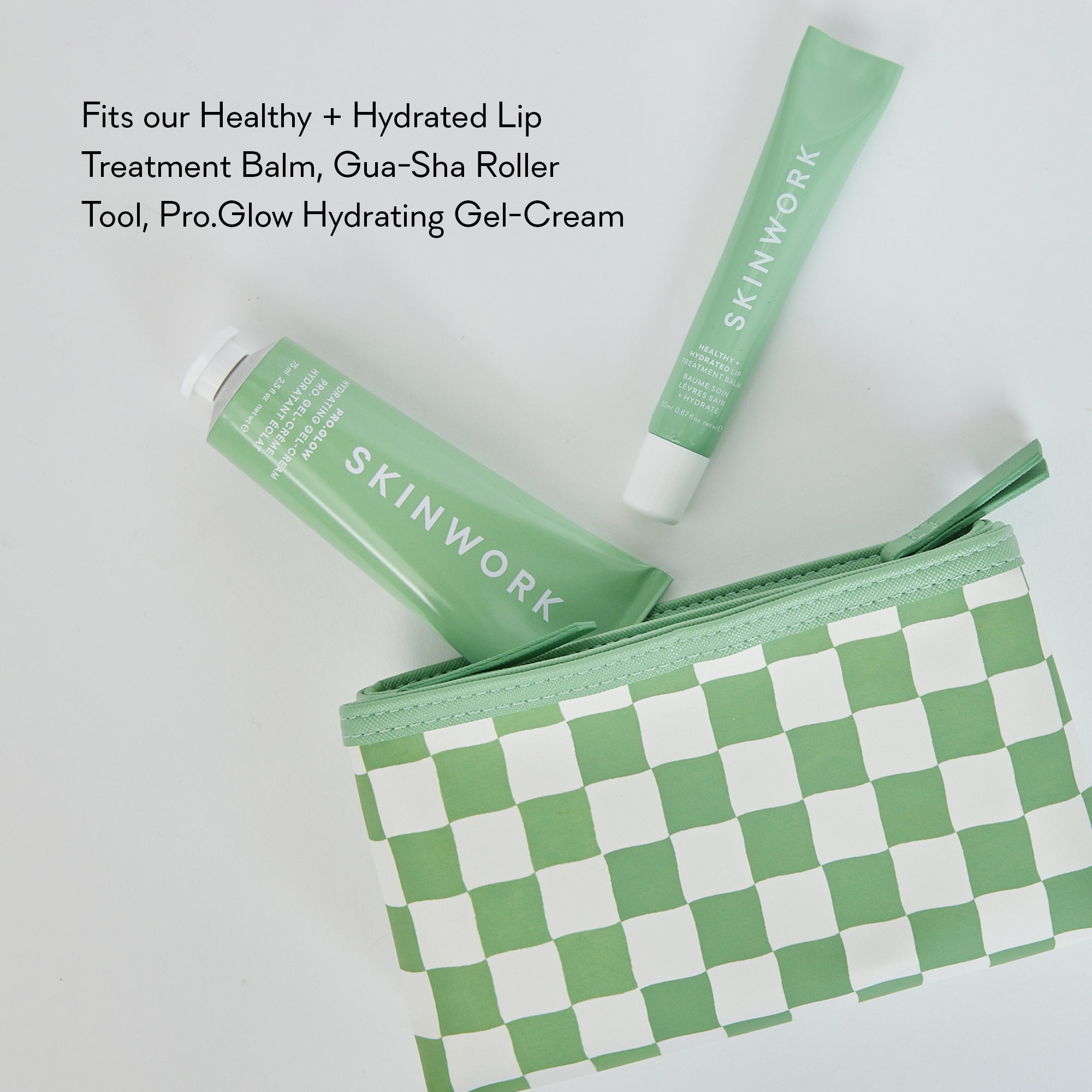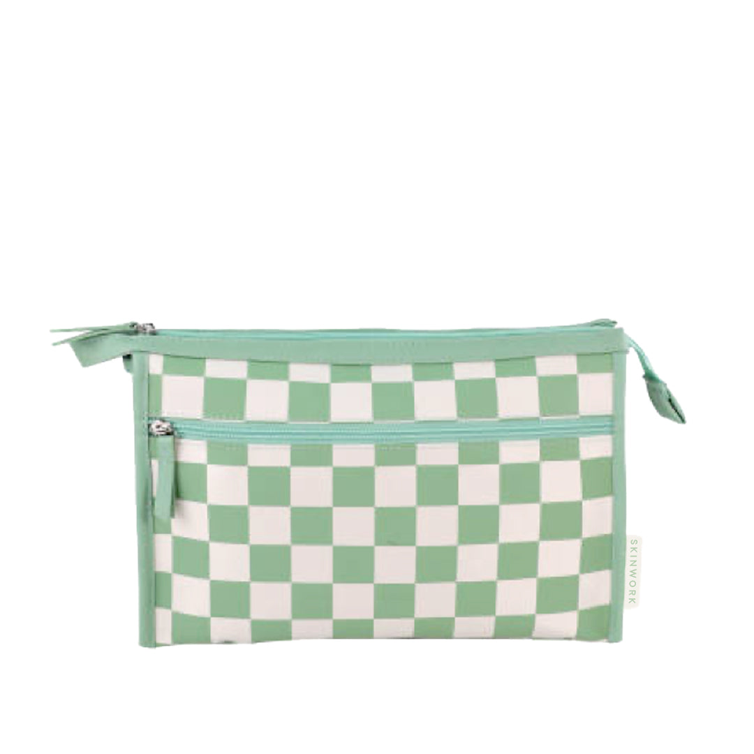 SKINWORK Green + White Checkerboard Cosmetic Bag